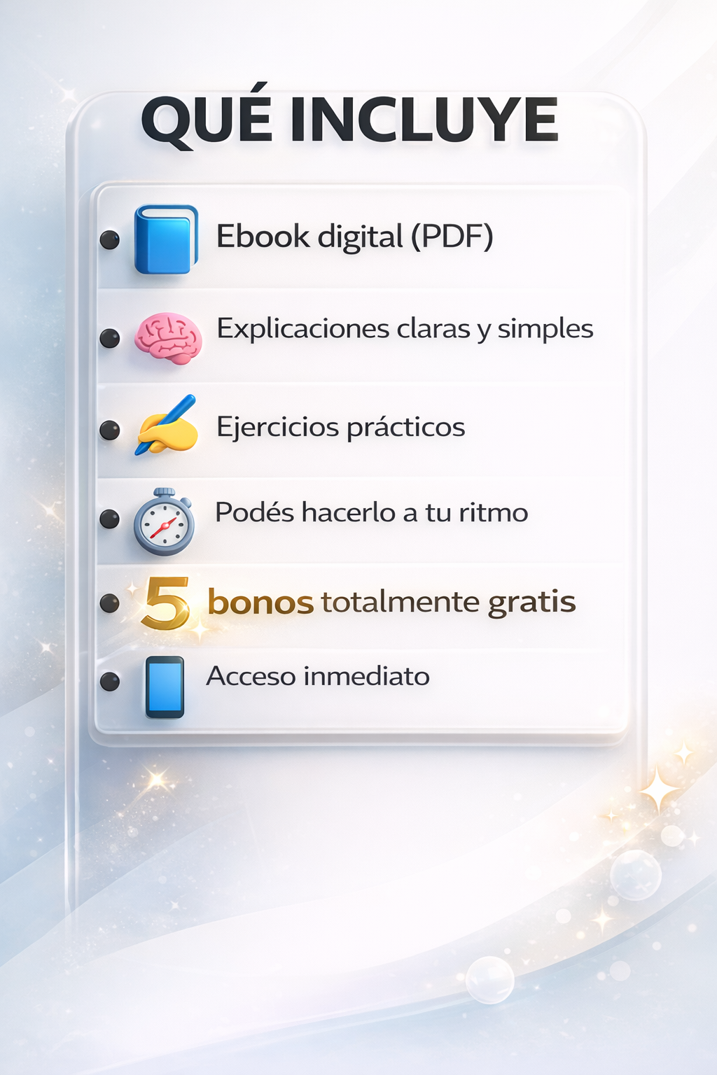 No es solo teoría. Incluye ejercicios, ejemplos y prácticas concretas para aplicar desde el primer día.